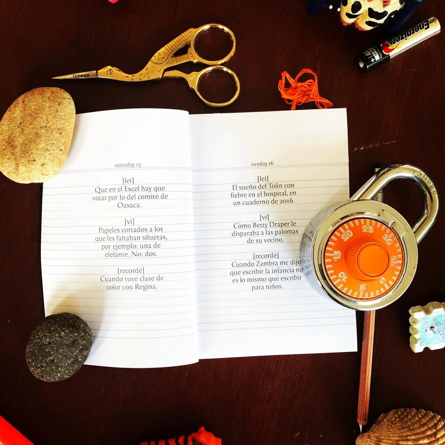 [Leí, vi, recordé] es una colección de momentos de principios de 2020 cuando el mundo aún existía y una piedra me llevó a un tumor y un tumor me hizo perder de vista la pandemia hasta que todos estuvimos nadando en ella por este par de años que han transcurrido 🧡 nació en la clase de bitácora de Ana Mayoral, en la maestría en Artes visuales, este ejercicio y juego y rutina se convirtió en un fanzine del cual hay 50 ejemplares en el que pueden leer un diario, una lista cotidiana, un registro del tiempo, mientras llega lo que sigue